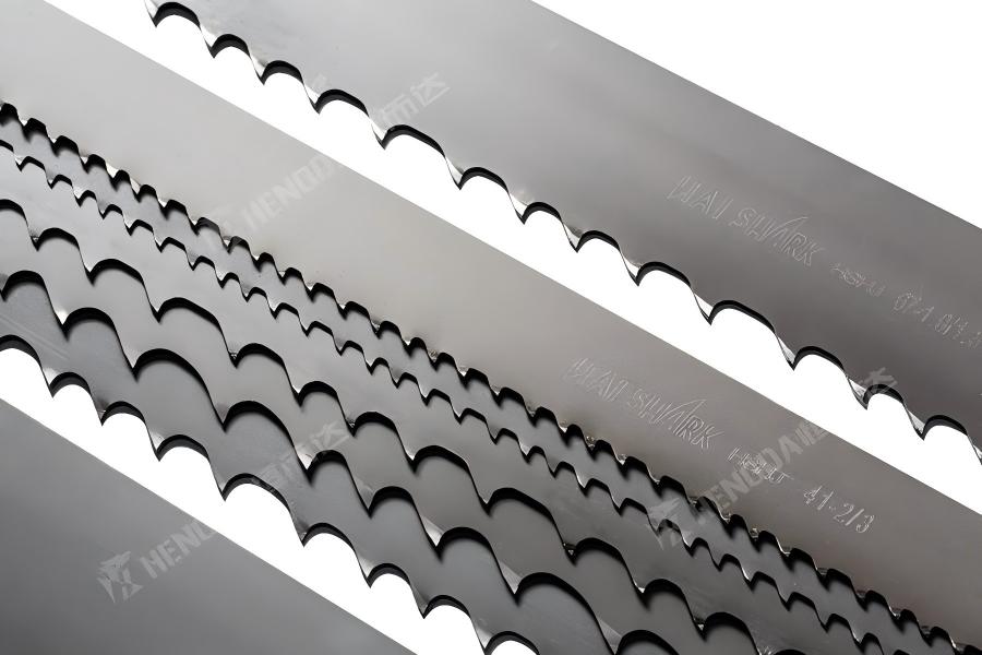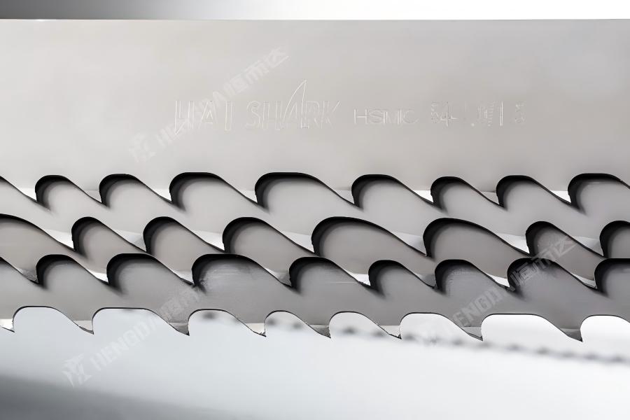 上图为磨齿带锯条,是一种双金属高速钢带锯条新工艺产品,齿部角度、光洁度、锋利度更加完美,锯切能力更强、使用寿命更长。