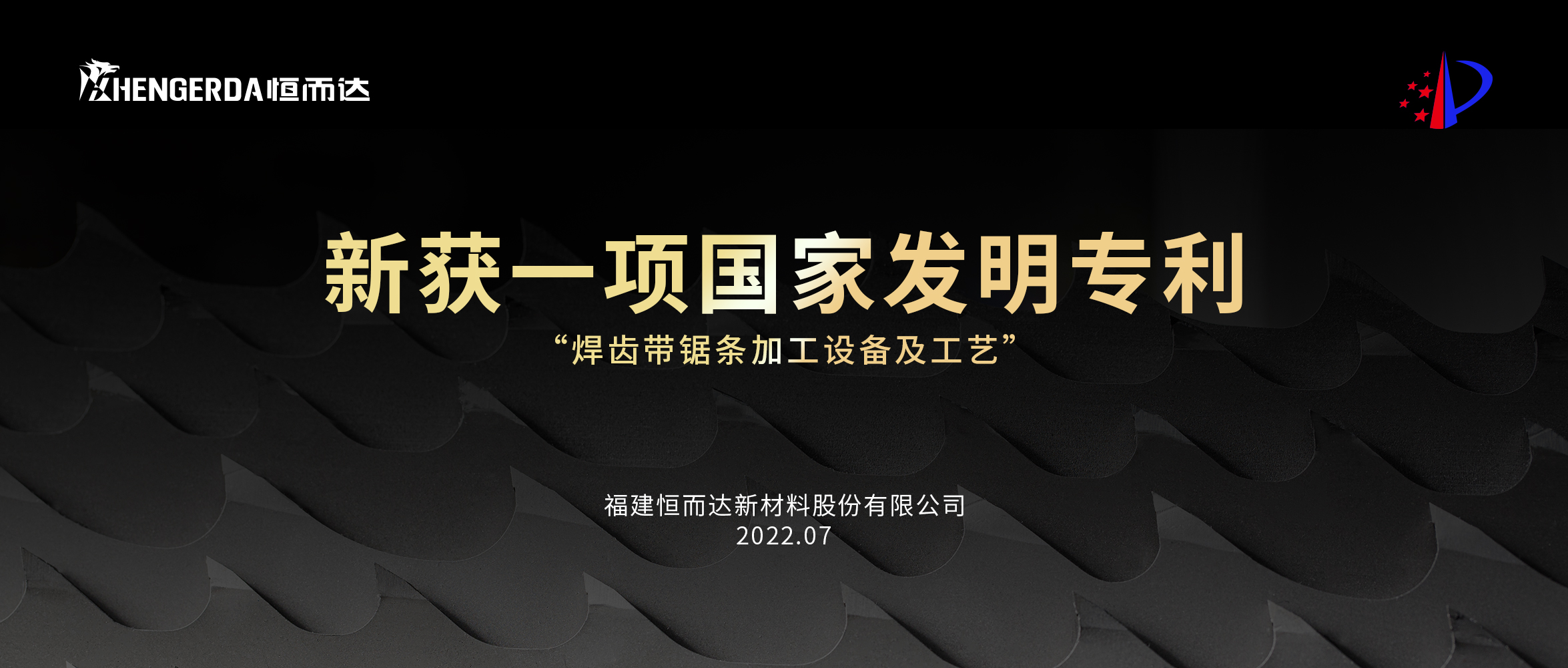 7月11日,佳讯再传,恒而达自主研发的“焊齿带锯条加工设备及工艺”经国家知识产权局实质审查通过,被授予国家发明专利。截至目前,恒而达现有授权专利90项。