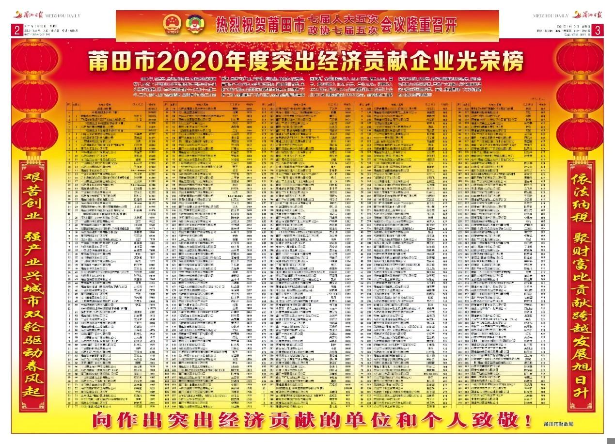 近日,莆田市召开了第七届人大五次及政协七届五次会议,会上对2020年度有突出经济贡献企业予以了通报表彰,福建恒而达新材料股份有限公司榜上有名,“湄洲日报”等媒体刊登了该项喜讯。